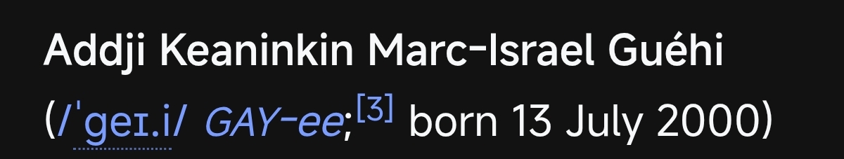 >In December 2024, the Football Association indicated that they would contact Guéhi to remind him religious messaging is banned from equipment, after he played with "I love Jesus" handwritten over the rainbow-coloured captain's armband as part of Stonewall's Rainbow Laces campaign to support LGBTQ+ issues.[90][91] In spite of the warning, Guéhi further risked FA charges by writing "Jesus loves you" over his rainbow armband in Palace's following game.[92] Guéhi's father defended him from criticism, accusing the LGBT community of "trying to impose on others what they believe in".[93]Love this guy