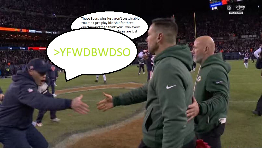 This is your reminder that the bears haven't beat a single good team all year and needed 6 meme comebacks against bad teams to go 11-6the patriots needed no such nonsense and went 14-3