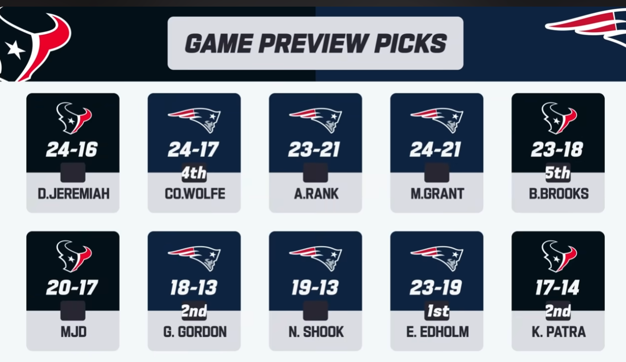 >>153002820>pat fag is having a tizzy since all the professional analysts see toxins winning? 6/10 NFL analysts chose the Patriots over the Texans.