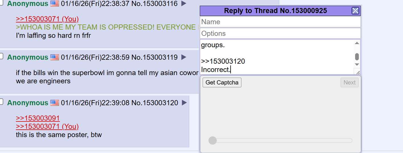>>153003146>I know how to use 4chanXyou exposed yourself by using the inline text featureYIKES