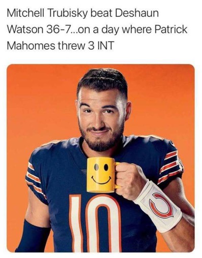 >bears did not beat a SINGLE good team all year>needed 6 meme comebacks against garbage teamsgrim