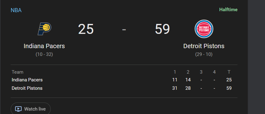 Pistons 59 x 25 PacersHalftime