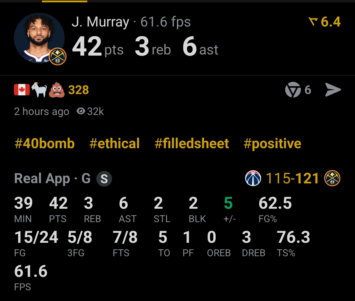 I really wonder how Nuggets will play when Jokic comes back. The current system they're playing in seems so much better than Jokicball at getting the bench players involved.
