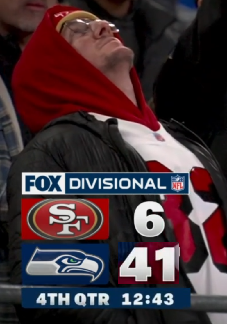 Thank god my niners got blown the fuck out. There was a chance that them winning the Super Bowl might have given me a few minutes of happiness in my worthless miserable life. I knew that I couldn’t have that. Been watching the team for 25 years and all it’s been is shit. And the cherry on top is the Seahawks winning the Super Bowl. At least now I don’t have to keep watching them having hope that the one sport I still watch had the chance to let me down one last time. Hell yeah.