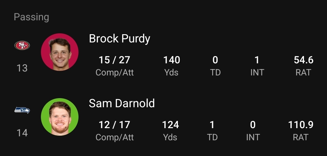 So how many yards did Purdy run yesterday because the O-line couldn't stop the Seattle defense?