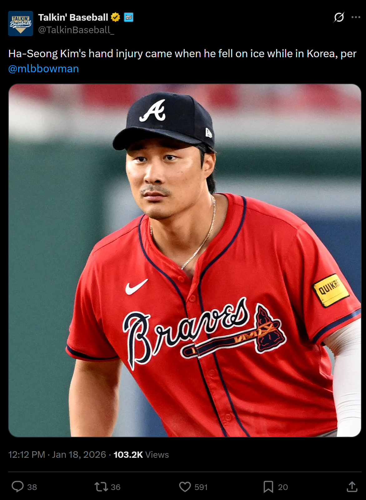 >Ha-Seong Kim's hand injury came when he fell on ice while in Korea, per @mlbbowman