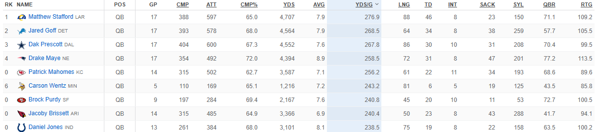 Meme QB, hasn't been challenged by an actually good QB once in his career. He will struggle hard in Arrowhead against a fully healthy Mahomes this year.
