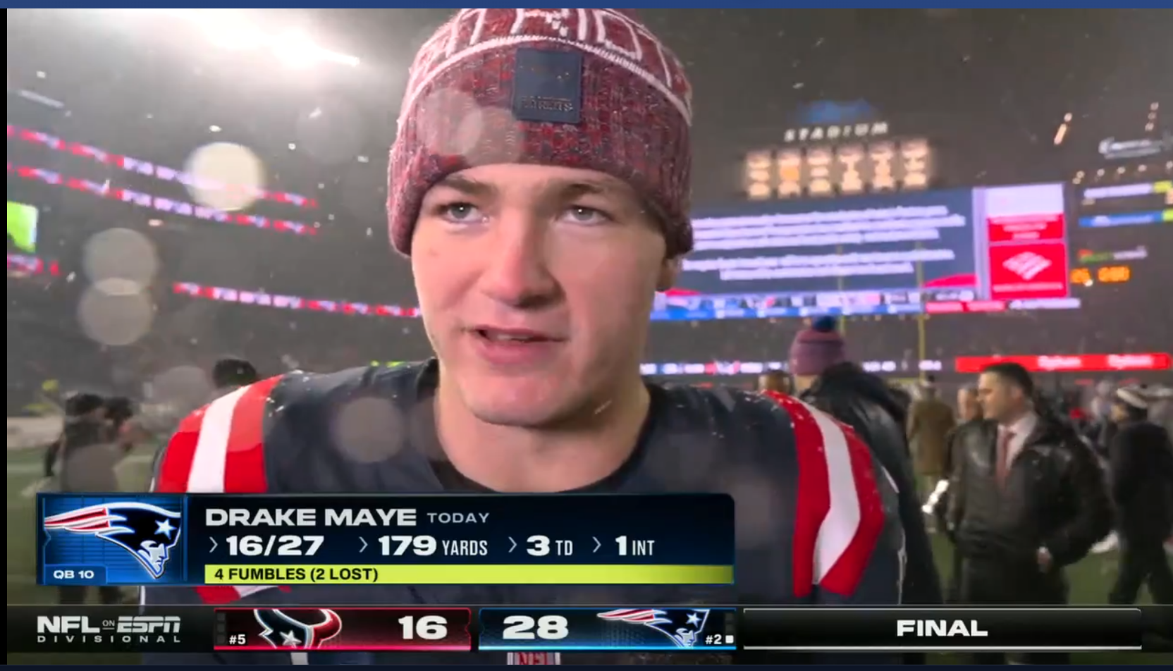 people talking about cj being dragged to the super bowl before this game ignore that maye set a new NFL record for fumbles lost by a QB