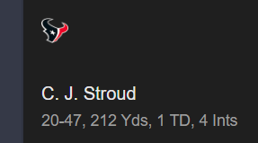 Come on. What QBs could perform better than Stroud today in this weather with so many players injured?