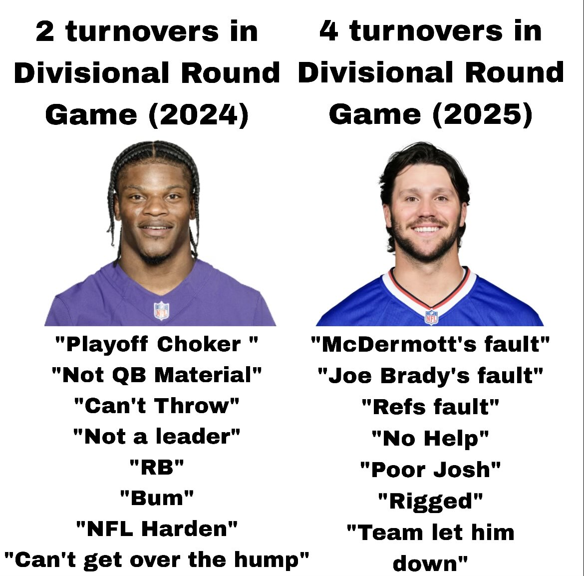 Then why aren't they? The Ravens lost to the Patriots this year, idiot. The Chiefs were 6-11. They couldn't handle the Patriots. The Bills split with the Patriots and got knocked off earlier than them and you want to cry that they didn't have to face the Bills who the Texans beat?