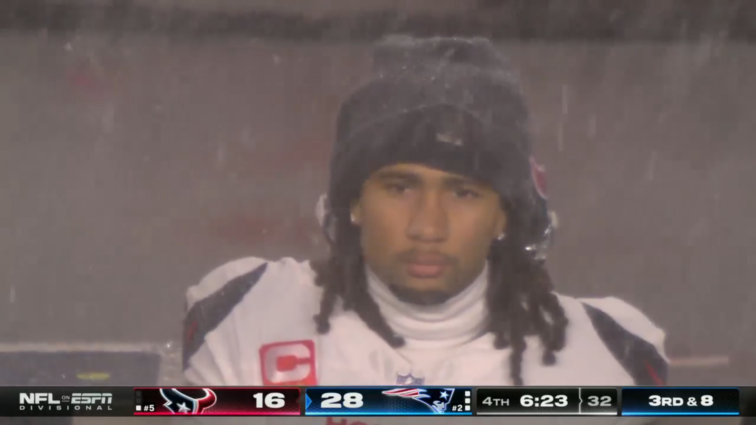 >texans are missing:>WR1>WR2>TE1>TE2>LT1>patriots are +5 in turnovers>1 score gamecongrats on the win?