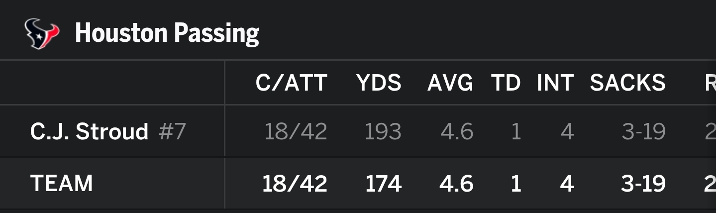 stroud out here literally killing his team. ryans is a bad coach for letting CJ play after the first playoff game and after the 1st half of this game.