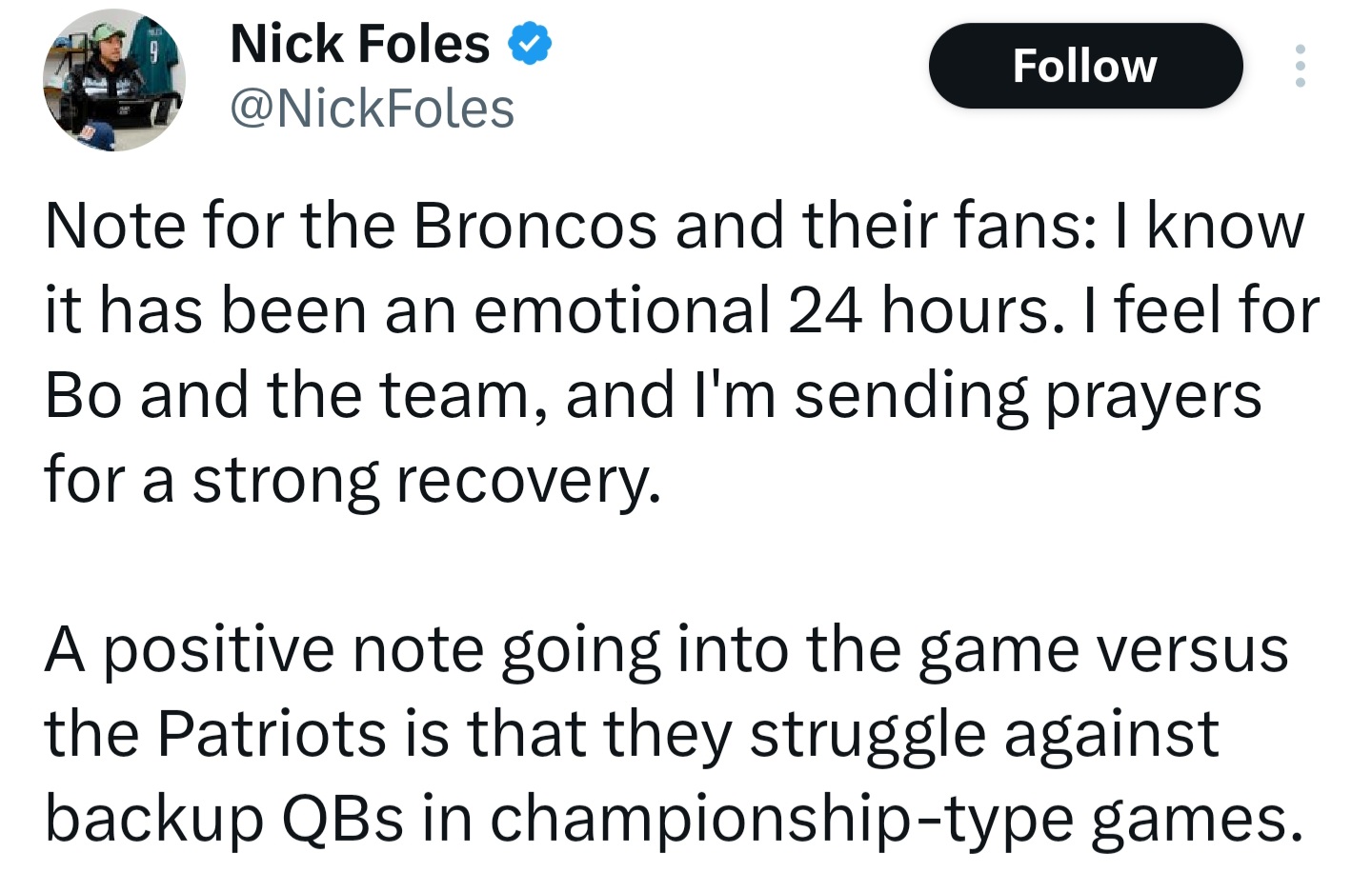 >>153054378i believe the NFL wanted broncos - bears, but bo's injury wasn't planned so they'll cook it for the pats to go to the owl