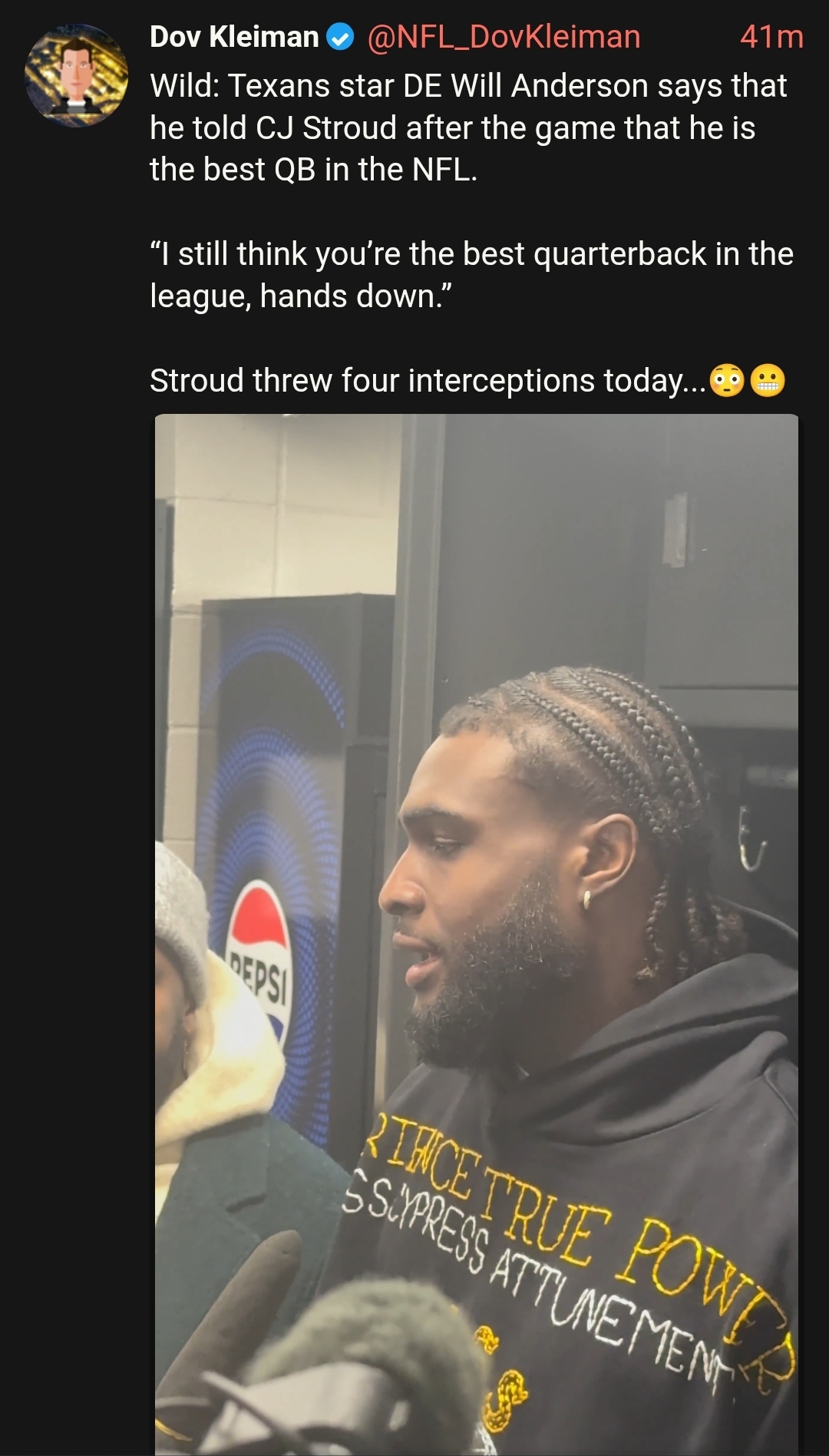 Imagine being Will Anderson Jr and your QB is fucking CJ Stroud.