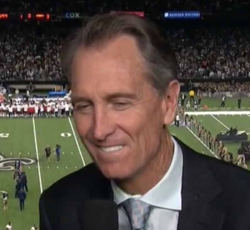 I found it interesting he’s in a semi-respectful looking suit instead of dress and make up like he is most of the time advertising to women. Maybe the NFL told him he needs to act straight so people will actually watch instead of changing the channel.