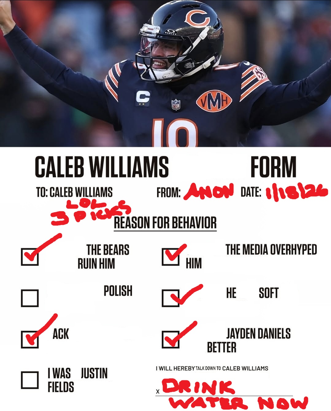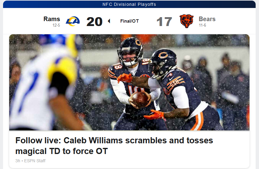 Sad the season is over but I'm happy with how the season went overall. Bears just need to go full in on defense and maybe a backup oline in the draft and Caleb just needs to work on accuracy in the off-season. I still think they are a legit that to win the NFC North again next year