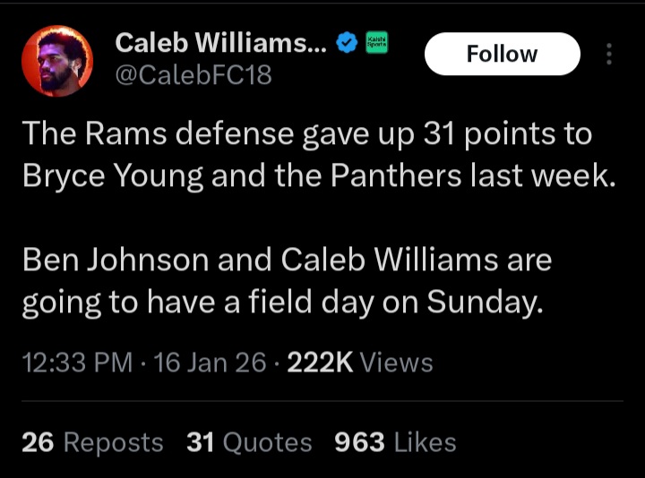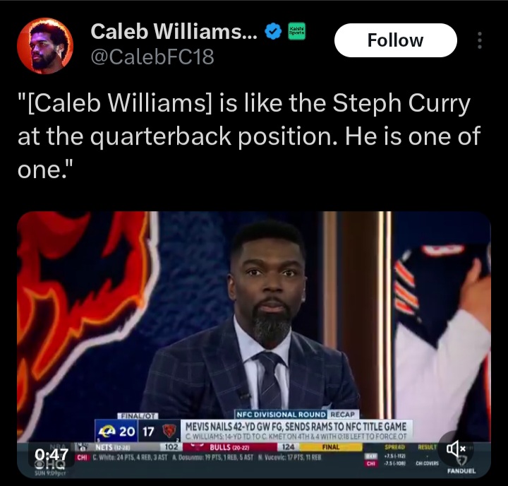 If Caleb Williams can throw at 60% accuracy he will be a top 6-7 QB and can win the SBIf Caleb continues to throw at like 51% he'll be out of the league in a few years after flaming out and going 2-15 when the meme magic doesn't work a few games in a row.