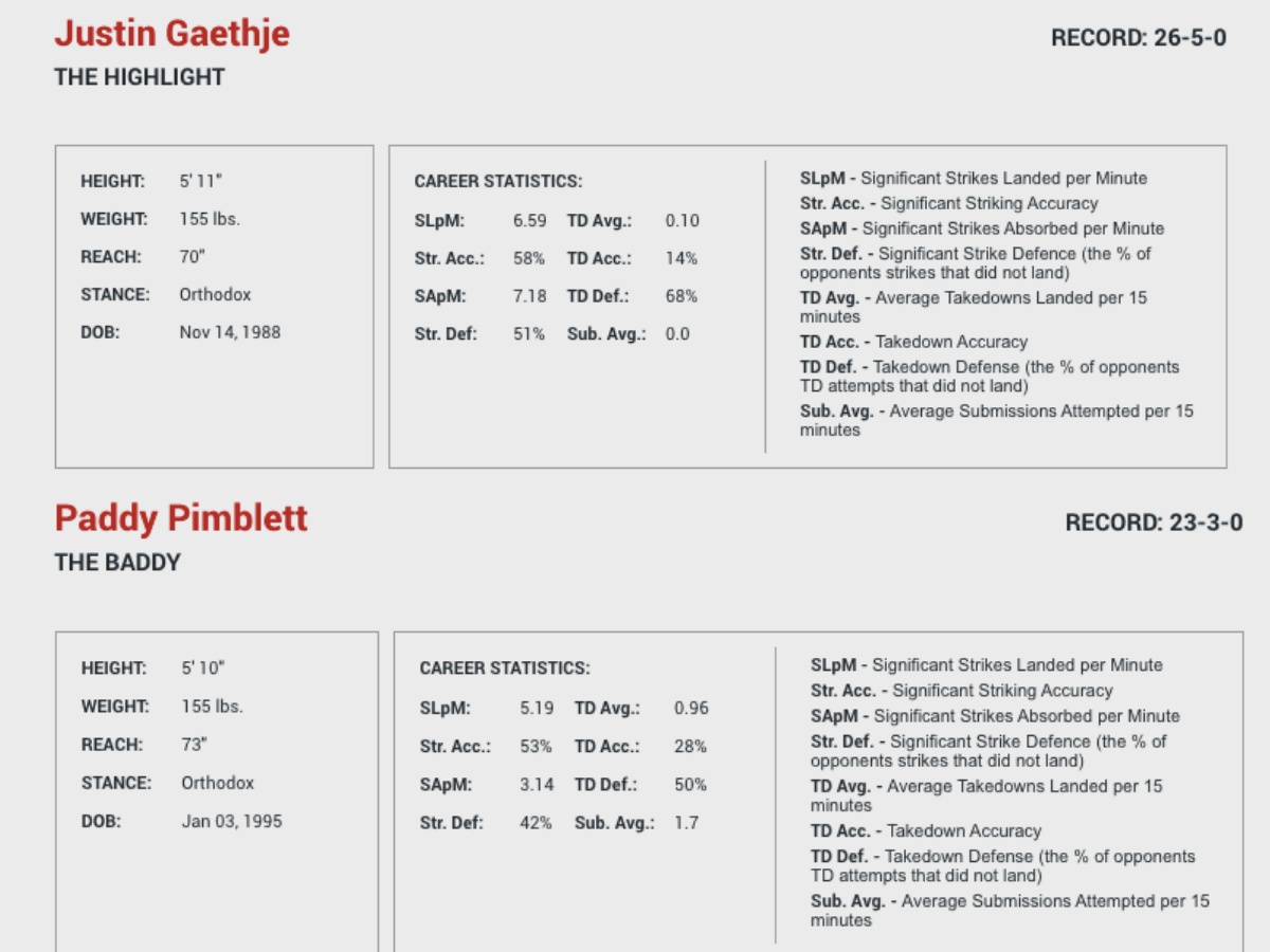 I've made a novel observation. Paddy drops his hands when throwing and might get caught with a punch. Look out for this as it may lead to a knockout. Look out for his hands low. Look out for the punch. Look out for whatever may come. I'm observant, I saw that. I see spirits too, or auras or whatever. Paddy has a pale yellow aura with a pink centre and Gaethje's is a vibrant ruddy rust brown. These are the sort of frequencies they are working with. The fight will play out like this: Gaethje lands the big punch as Paddy lowered his hands. Marc Goddard steps in and stops the fight even though Paddy is probably fine
