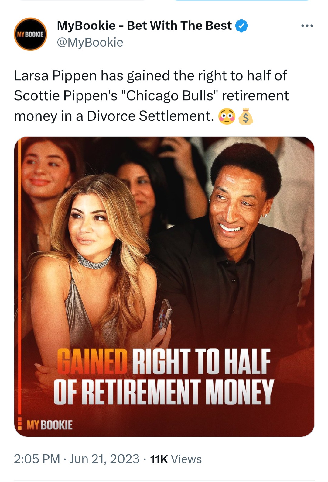 >>153089876>>153089913Exactly. She only gets money from his first bulls run's 401k and savings plan. Not all the money he made in sponsorships or the way bigger contracts he go with later teams. She did not get "half of all his retirement money"