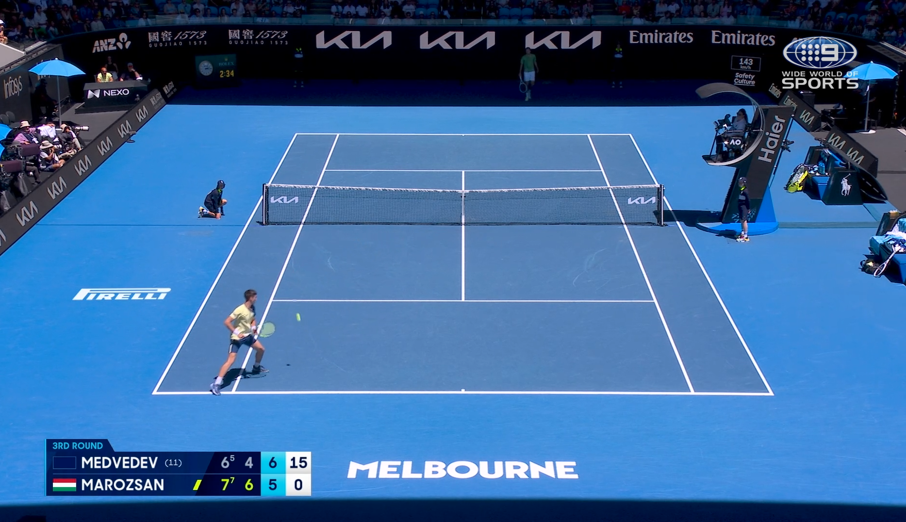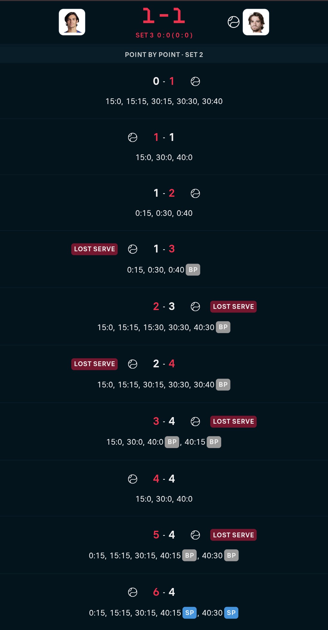 Apparently they get a ten minute break after this set because of the heat which will give him time to recover, moreso if it gets even hotter and they have to stop to close the roofInteresting how different things would've been if Spizzirri had managed to keep that break lead in the second