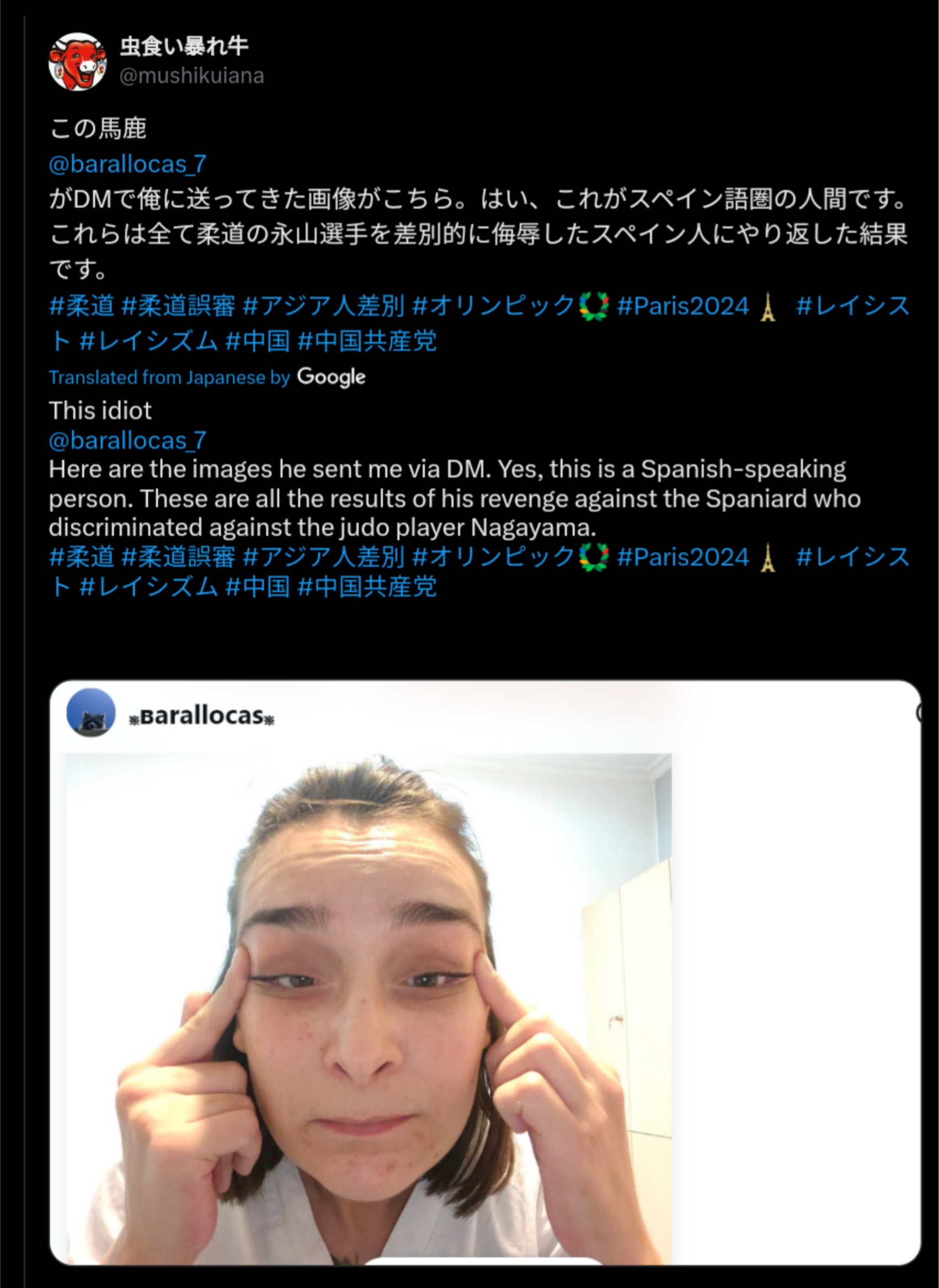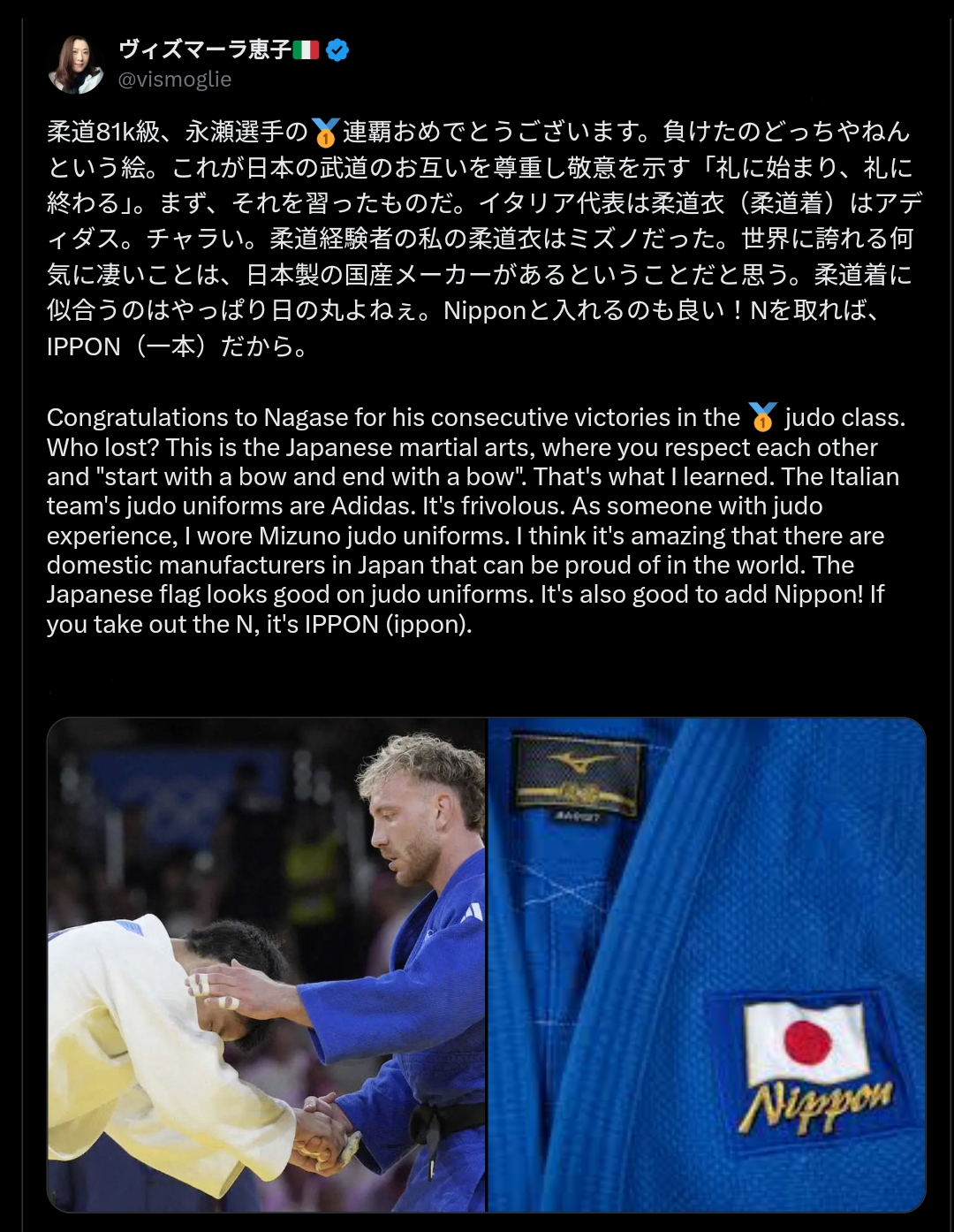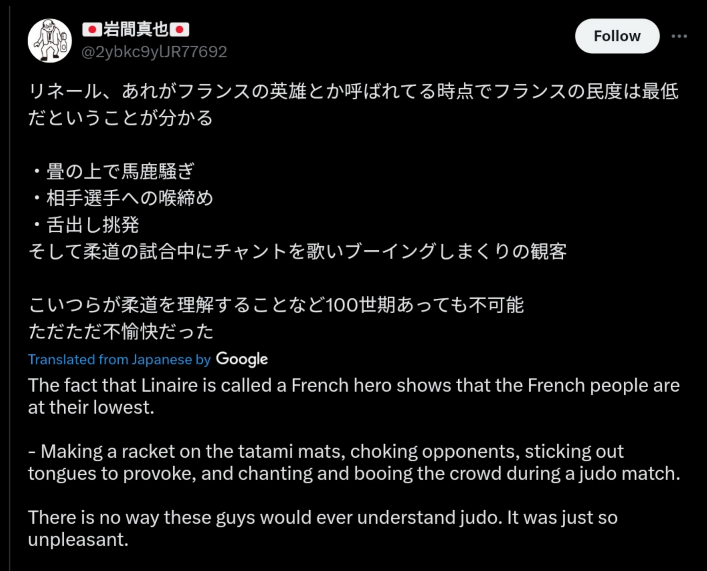 >>153190979why is this idiot celebrate?you are not supposed to do guts pose in judo after loss or winit is disrespect to opponentin 柔道 we start and end with bowthis guts pose is not spirit of 柔道foreigner who do not understand bushido should not do japanese martial artthis is why we call this mockery JUDO and not real 柔道