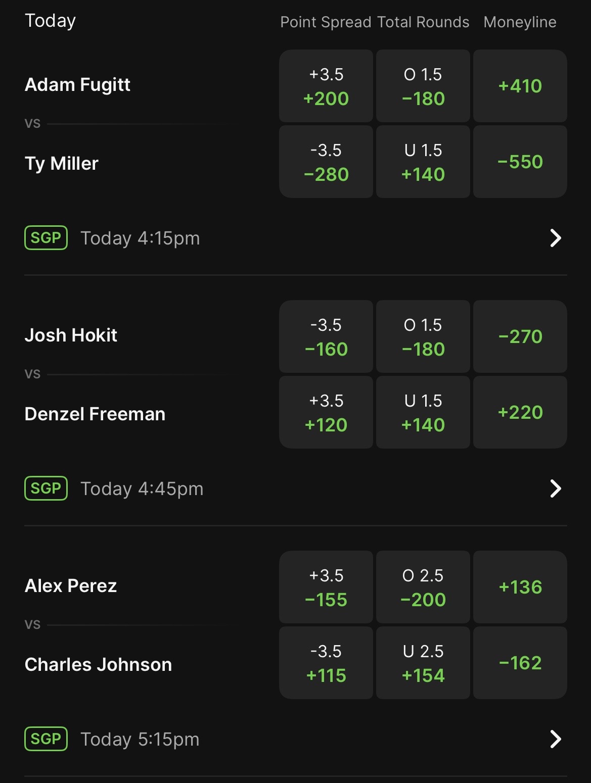 >>153124169>Paddy Pimblett>Sean O'Malley>Waldo Cortes-Acosta>Natalia Silva>Arnold Allen