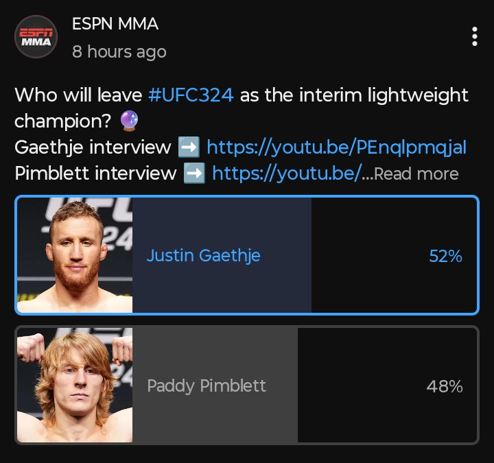It will be interesting to see how paddy deals with gaethje's leg kicks. That's one thing to keep an eye out for.