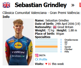 Clàssica Comunitat Valenciana - Gran Premi València (1.1)La Nucia - Valencia200kmStartlist:https://www.procyclingstats.com/race/gp-de-valence/2026/startlistLive stats:https://www.procyclingstats.com/race/gp-de-valence/2026/result/liveStreams:https://www.youtube.com/live/cFLcectfoQohttps://cyclingtiz.live/14:30 CET