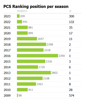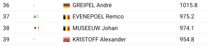 With todays win, Evenepoel overtook Museeuw in the PCS alltime ranking to take 37th place.
