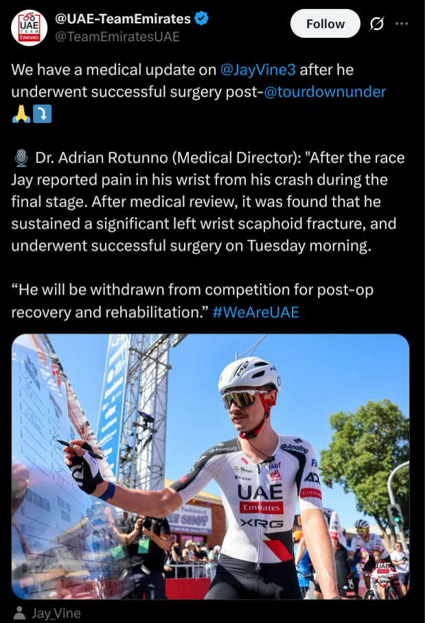 >>153211308You forgot>can't drop Pogacar since 2023