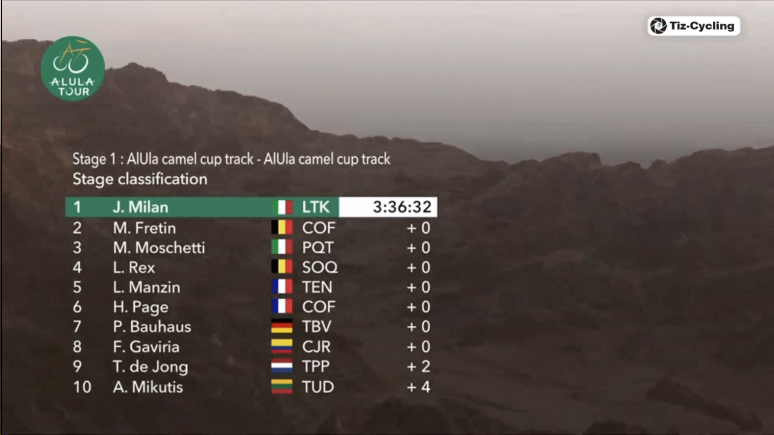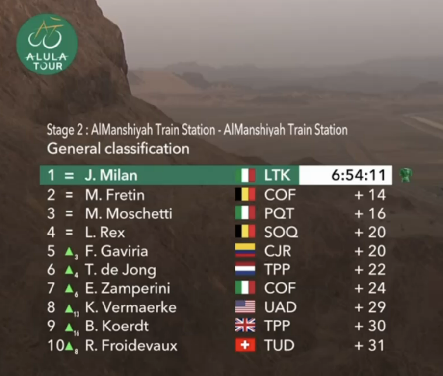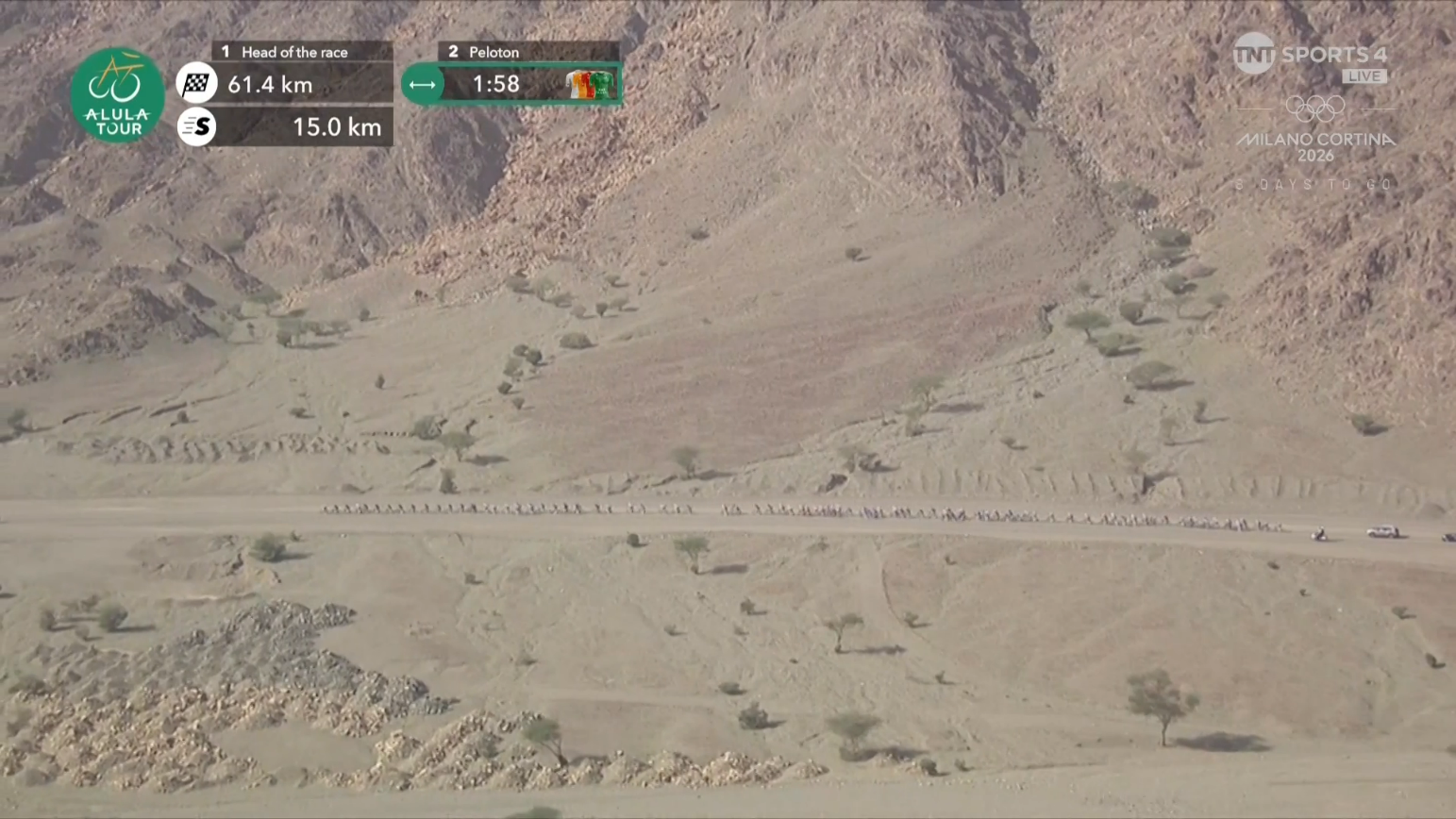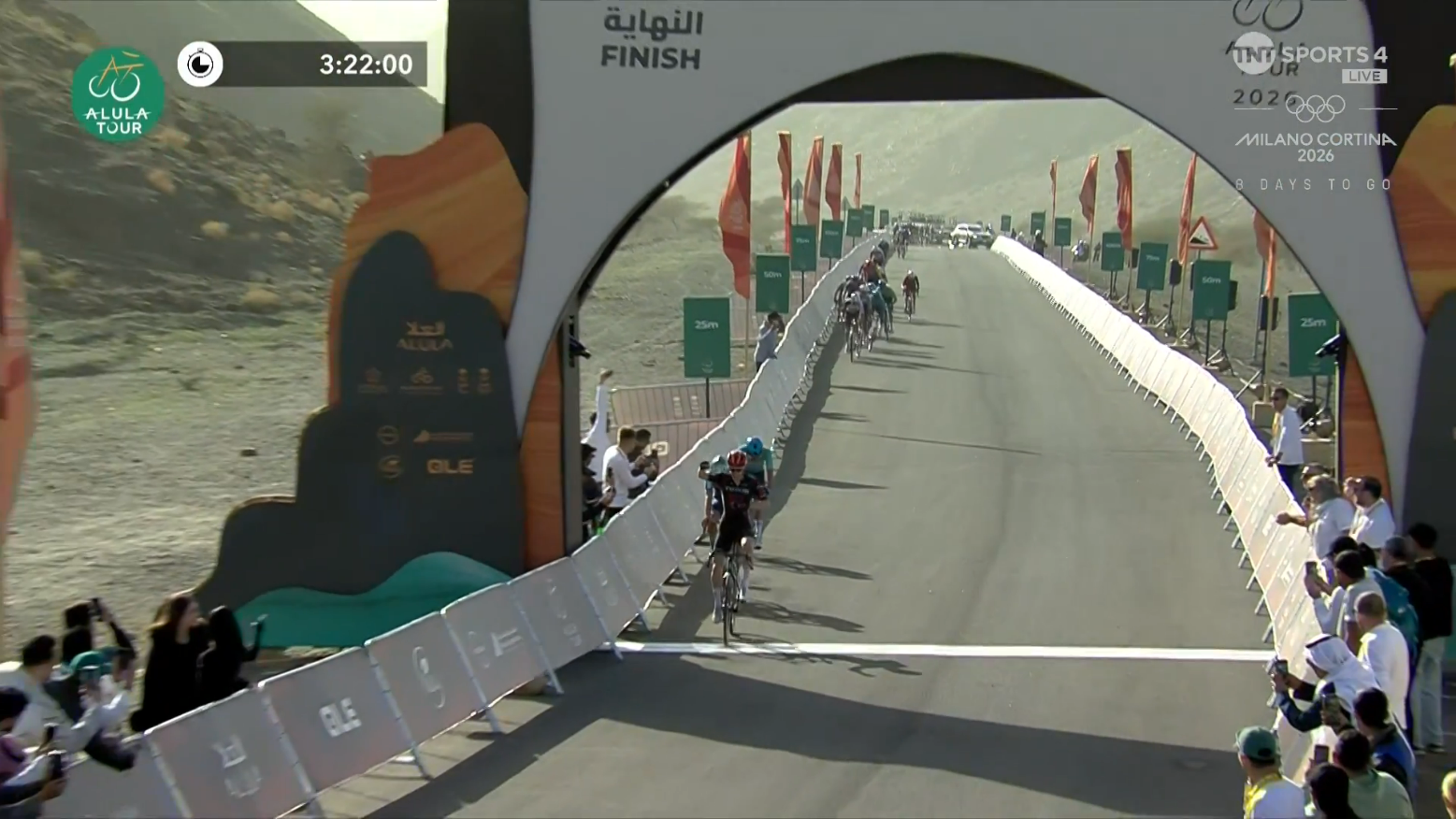 AlUla Tour (2.Pro)Stage 4Winter Park - Shalal Sijyat Rocks184kmStartlist:https://www.procyclingstats.com/race/alula-tour/2026/startlistGC after stage 3:https://www.procyclingstats.com/race/alula-tour/2026/stage-3-gcLive stats:https://www.procyclingstats.com/race/alula-tour/2026/stage-4/liveStreams:https://cyclingtiz.live/https://dlhd.dad/Eurosport / Discovery+ / HBO / TNT / L'Equipe / FloBikes12:30 CET