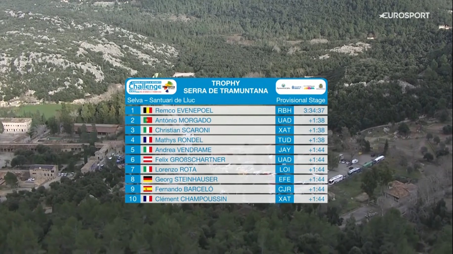 Trofeo Serra Tramuntana (1.1)Selva - Santuari de Lluc154.3kmStartlist:https://www.procyclingstats.com/race/deia-trophy/2026/startlistRoadbook:https://www.vueltamallorca.com/descargas/CATALOGO-CH-MASCULINA.pdfLive stats:https://www.procyclingstats.com/race/deia-trophy/2026/result/liveStreams:https://www.youtube.com/watch?v=G5FkJBqRg_Mhttps://cyclingtiz.live/https://dlhd.dad/RTVE 14:30 CET