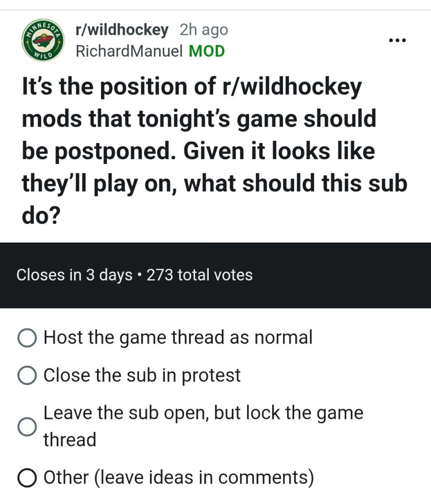 >>153129850How many people are posting in a Minnesota Wild Gamethread anyway? Like there can't be more than 12 people?
