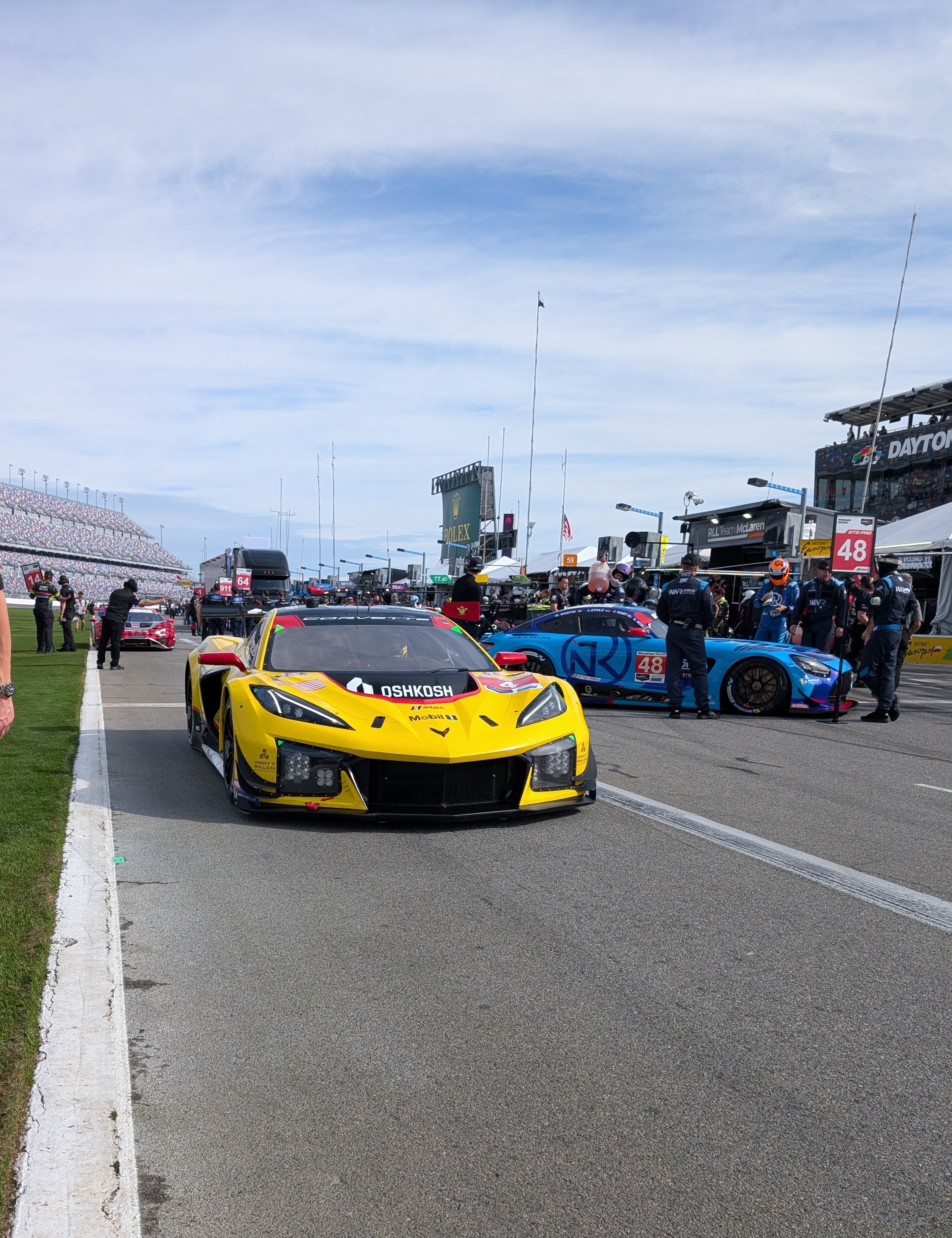 >>153175644Daytona pitlane is a lot louder than other 24h I've done (Spa and LM), mainly because there are no buildings to shield you from the noise.However I think the main problem is the lack of space, not so much the engine noise.At other circuits you have plenty of room behind the garages and you always have the option of laying down in the dark of your trailer, but you can't do that in Daytona. The pit stalls are tiny and the road immediately behind the pitlane is busy all the time with carts ferrying food, tires and the occasional crew running to the garages. If you want to find a more secluded area to sleep you have to walk all the way around a fence, which becomes a problem if you gotta run back for an unexpected pit stop. So in the end you are forced to sleep in a cramped space, in uncomfortable positions, with direct line of sight (and sound) of the pitlane and speedway and blasted by a million suns worth of floodlights. I've had way better naps elsewhere that's for sure.>>153175946Nah, just some radio banter here and there but for the most part the radio was kept for important comms and we didn't do anything special to keep us entertained. Doesn't help that our crew radio was also receiving on the spotter's channel and boy oh boy do they have to talk all the damn time.As for the red flag issues, cars can handle being left in the wet or cold for a few hours. Usually teams are allowed to warm up the engine if the stop is long, but it wasn't that cold nor that wet to have caused any issues anyway. I don't know if the officials were afraid of potential issues with minimum race distance or driving times or things like that or they just don't want to use red flags unless it's absolutely inevitable, I guess we'll find out at some point. I still think it was dumb as hell to keep drivers driving like that for 6hrs.Anyway I can't quote everyone because 4chin thinks my post is spam, but thank to all you bros out there, let's hope for a better LM24 at least