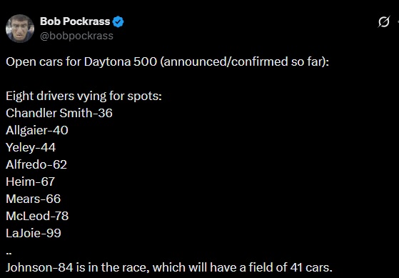 AND THE CHARLOTTE ROVAL IS GONE, possibly after SVG and others said it was inferior to Daytonahttps://x.com/Jordan_Bianchi/status/2015798874594562183 (not linking to nyt)And Snake Plisken is the Now honorary Pace Car Driver for the Daytona 500https://x.com/DAYTONA/status/2015591767815438580