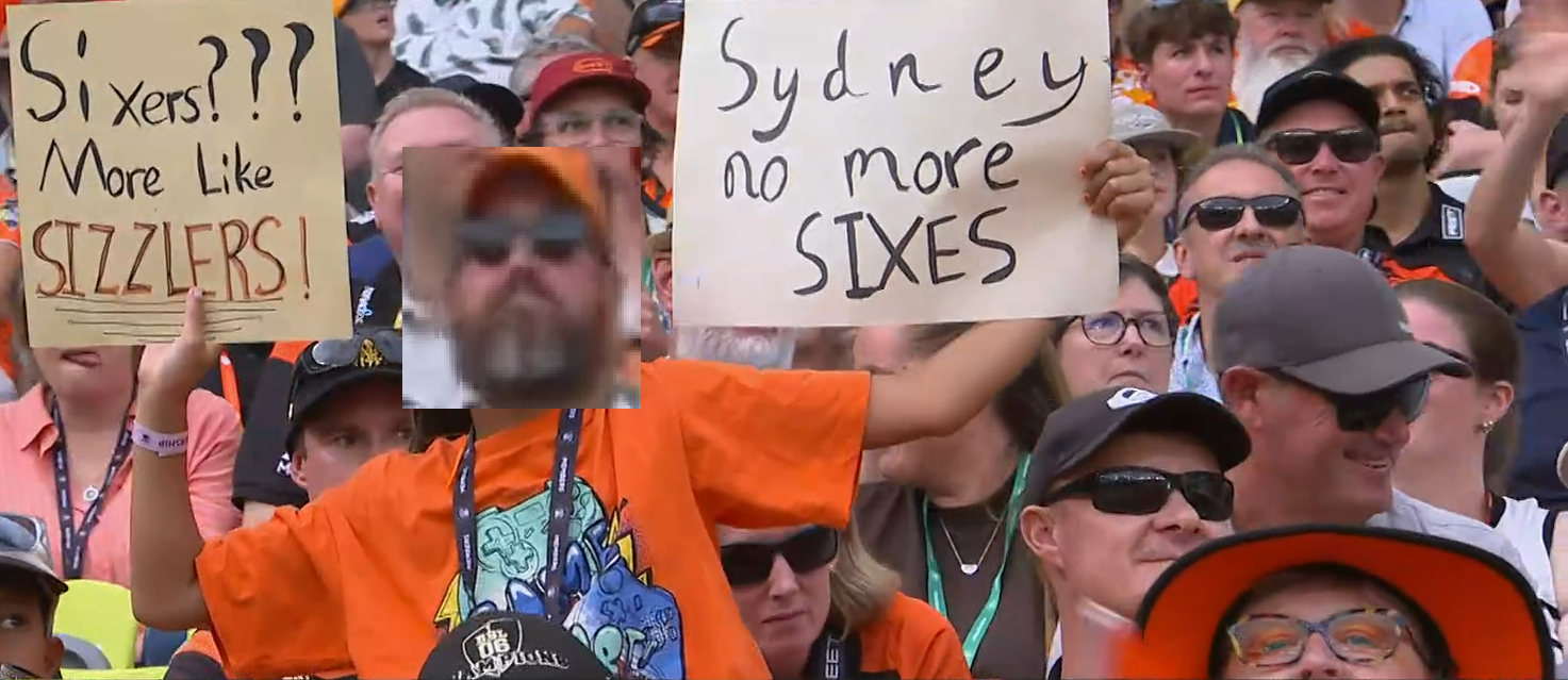 >50,000 scorcher fans in the stadium>44 sixers fans in the stadium>all think BBL IS cricket