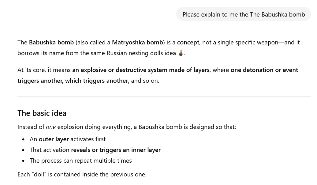 >not knowing about the Babushka Bomb