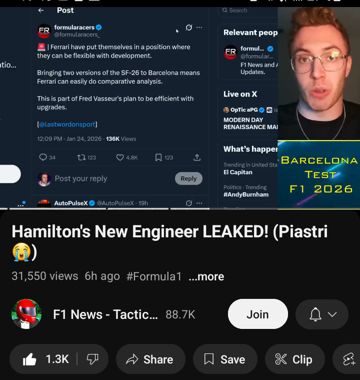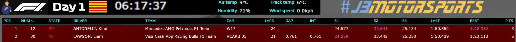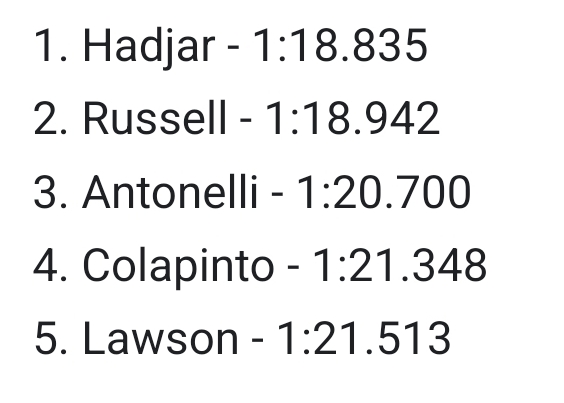 >Hadjar posted the fastest time today at the Circuit de Catalunya: 1:18.159. For what it's worth.