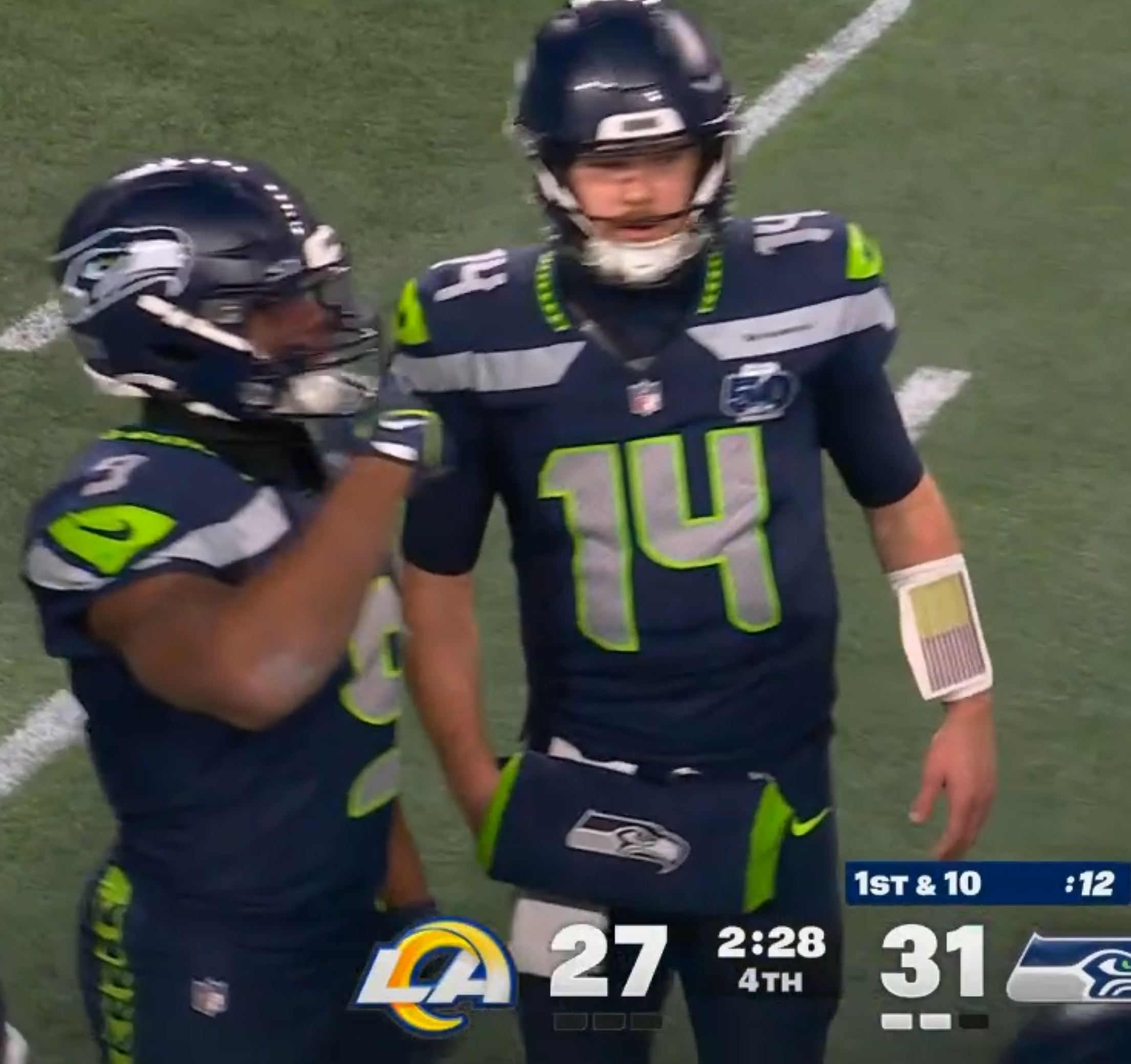 HONESTLY THAT MIGHT BE GOOD FOR THE RASM. IF SEATTLE BURNS A LITTLE CLOCK AND TURNS IT OVER OR TURNS OVER ON DOWNS OR PUNTS, THEN THE RASM CAN JUST GO AND SCORE AND NOT HAVE TO PLAY GAME WINNING DEFENSE UNDER MCVAY