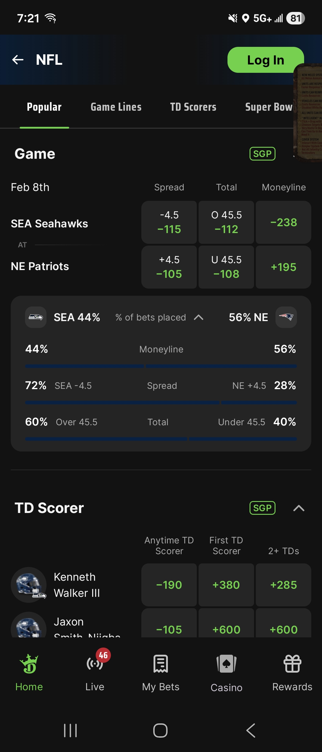 what were the odds for this being the Superbowl match up before the season?