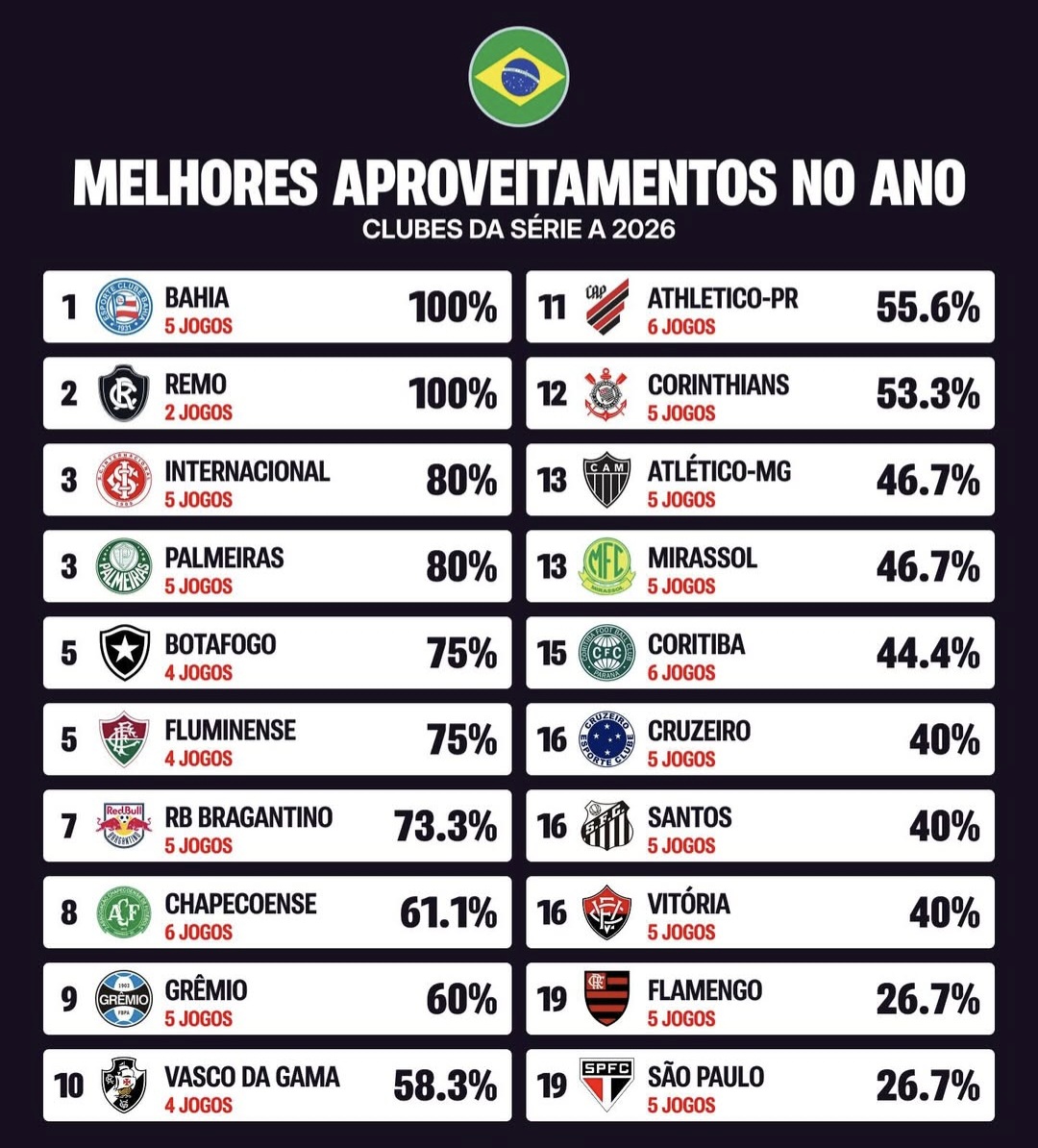 Still unbeaten in 2026Galo BragantinoBahiaRemo