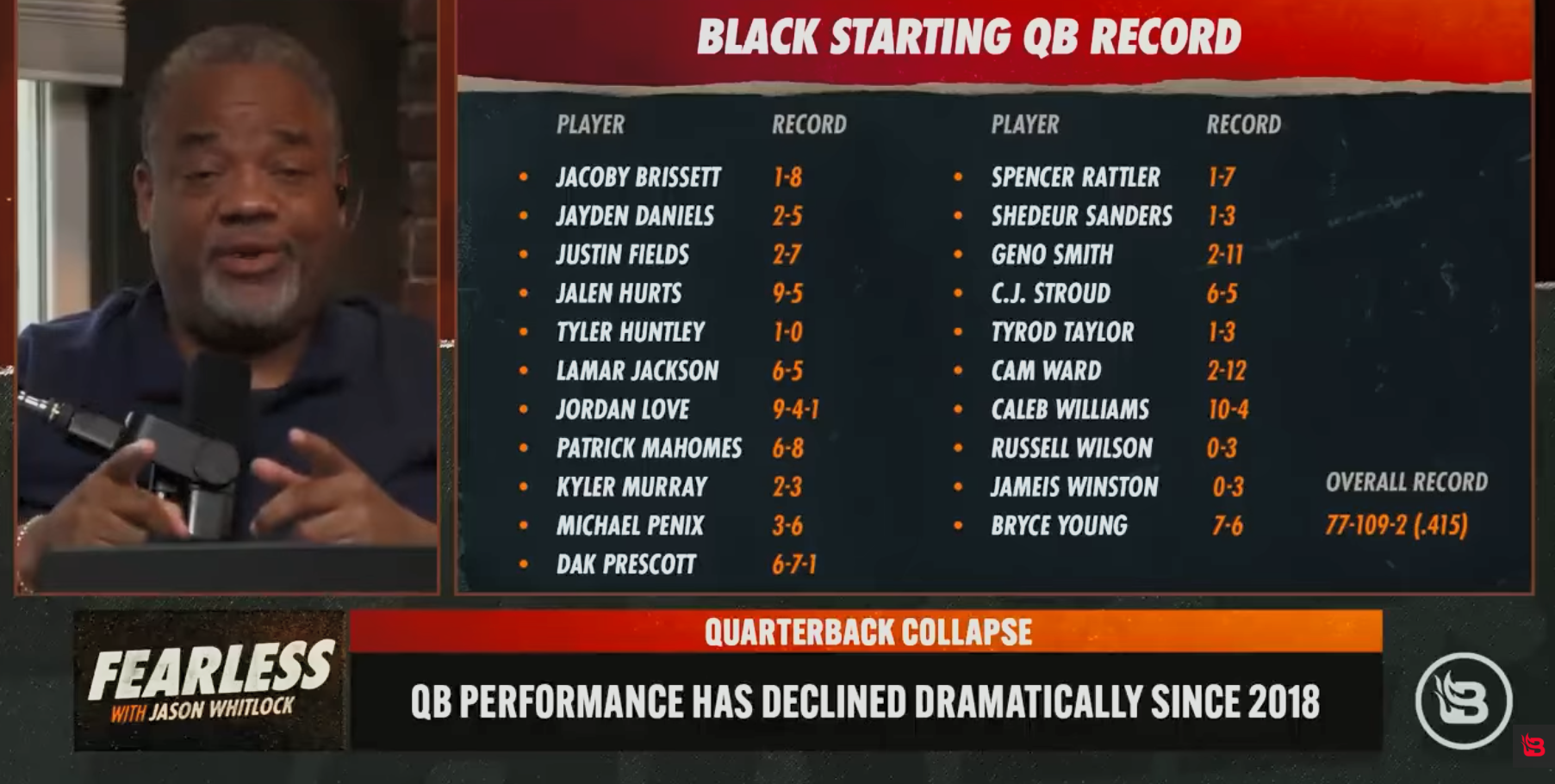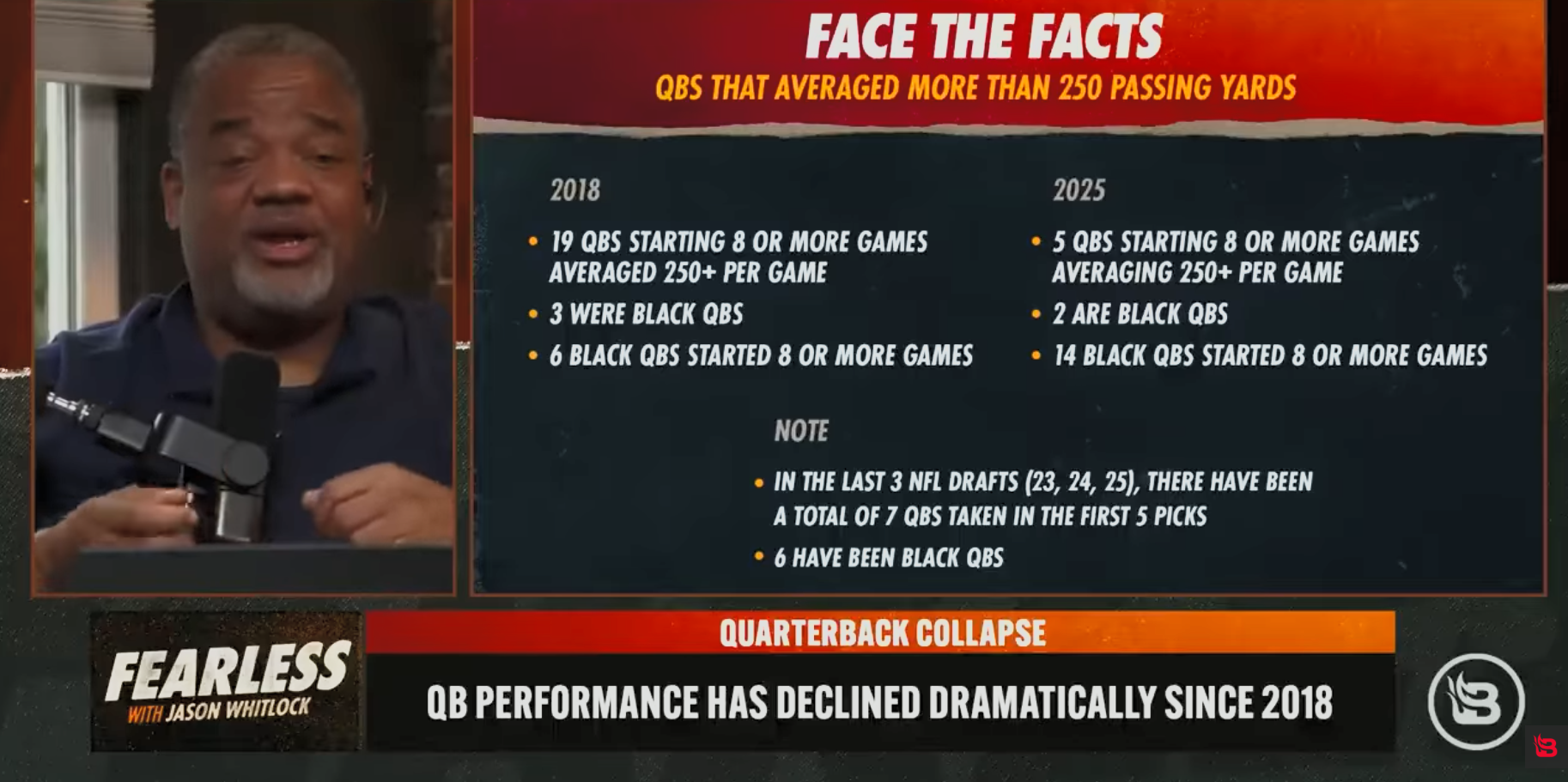 >>153177137Whitlock is funny but it's more an evolution of the game. QBs getting more protection via rule changes means more incentive to run the ball. It's not a white qbs vs black qbs thing. If more white qbs had been drafted higher in place of guys like Bryce Dung, Tony Richardson etc they wouldn't automatically pass for more yards