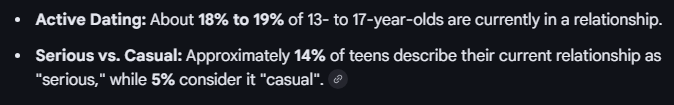 >>153188628Don't know if useful but most people do not get into relationships during teenage years. The one that do are the exception.