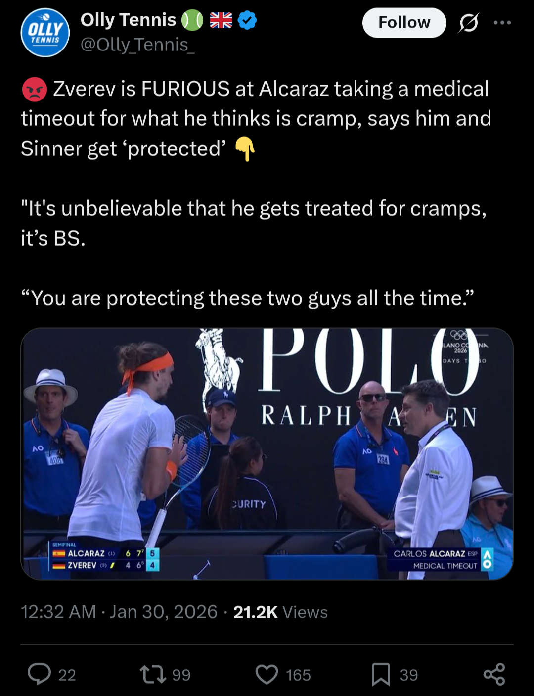 If Sinner didn't exist this would have been the final and everyone would wank Alcaraz off for how strong he is for beating this shitter Zverev in the final