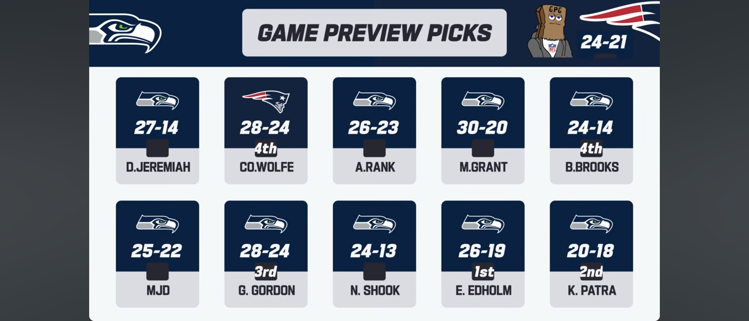 vegas odds have the seahawks at like -4.5 currently. their defense is way better than the patriots and maybe will struggle. i have a feeling darnold won't have a great game either though