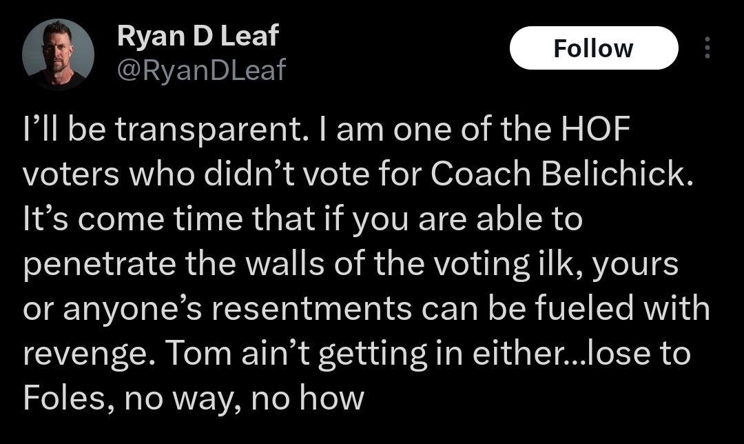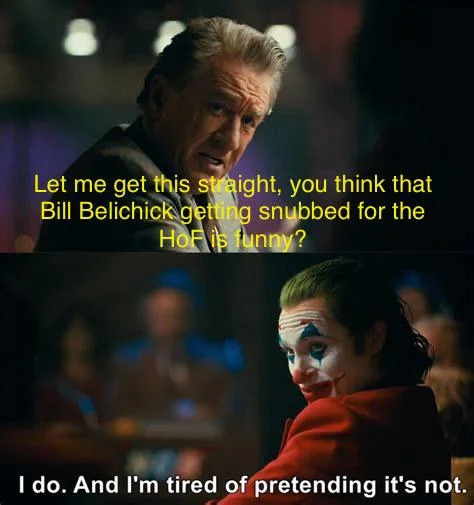 I agree with Mahomo for WKABOTS over all time. Its a wonderful fall from grace, but its not all time, just terrific when localized to this season. Furthermore, Belicheck being snubbed is more of a bitch move by the voters than anyone else. Genuinely, it is a greater blow to the Hall of Fame than to BB.