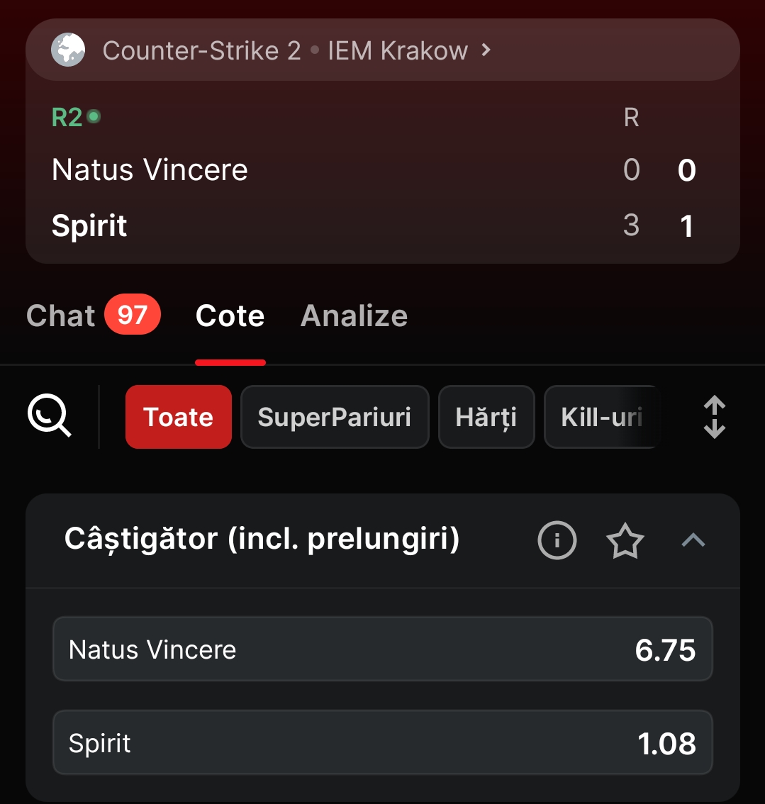 Team spirit live in cs if you want a good bet