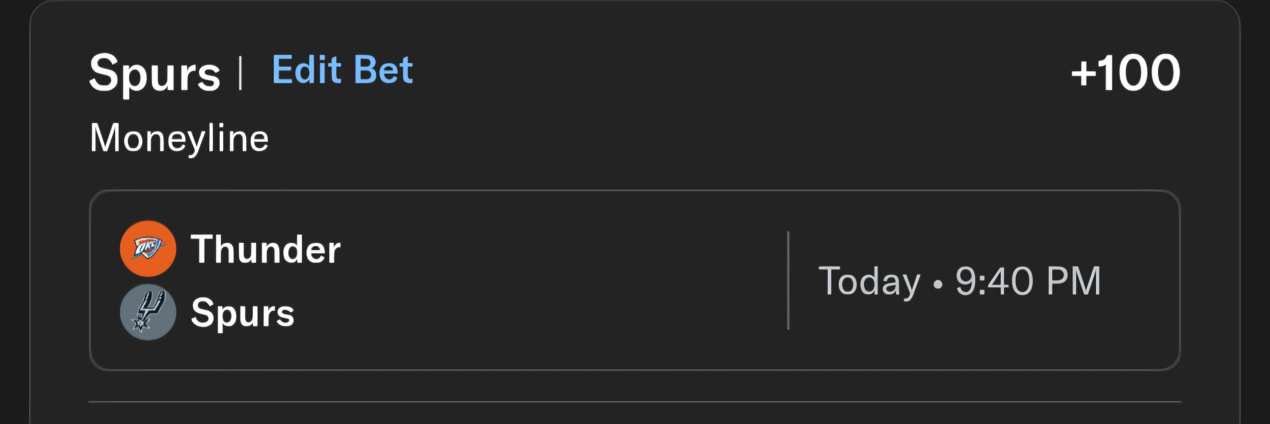 >>153264419I'm not sure what the hell happened, but Spurs ML was +100 when I posted that. They are -9.5 point favorites now, so I'm guessing OKC is sitting everybody. Guess I lucked out.