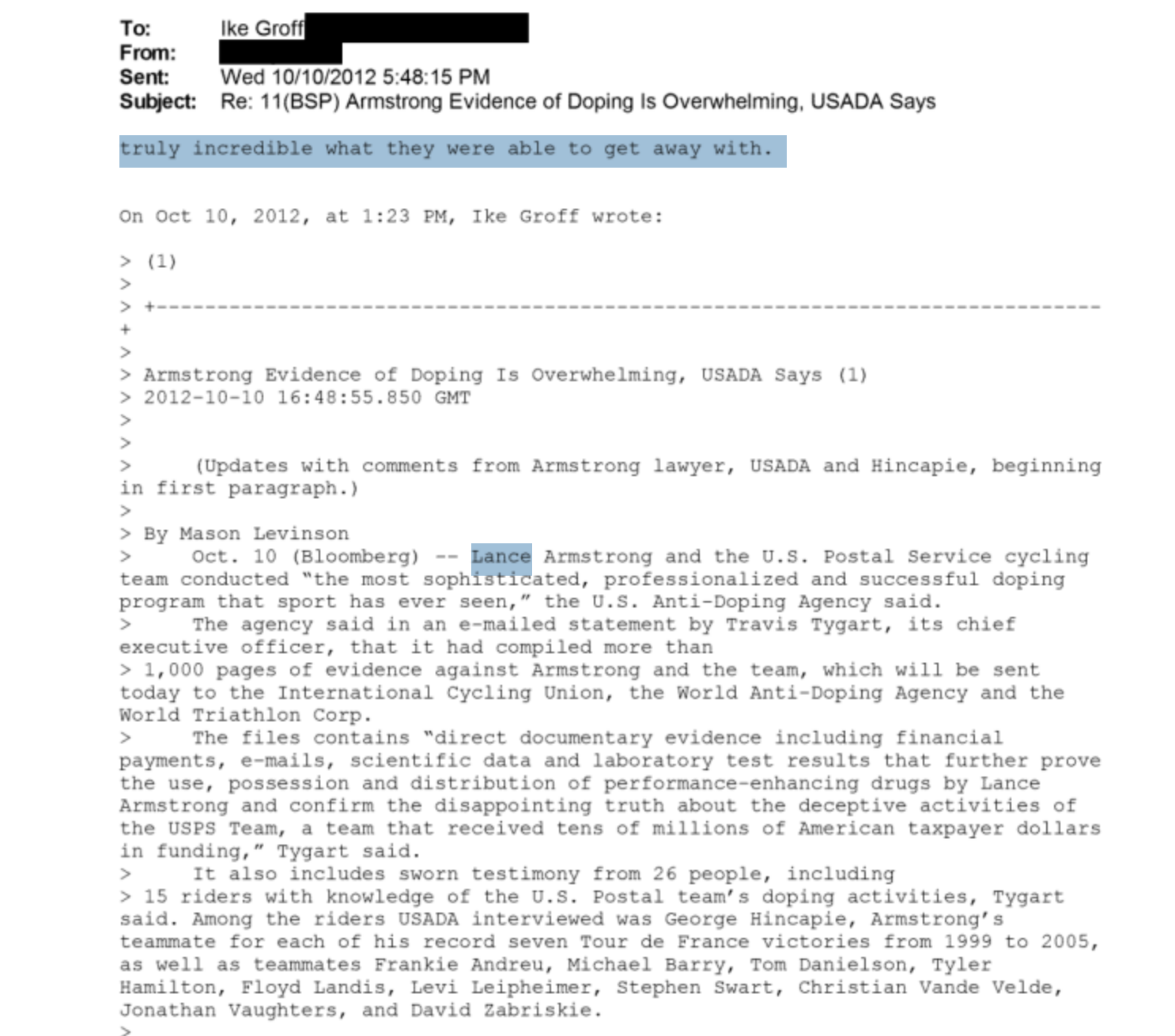 >>153240043Which cyclist would realistically be in the files? Lance?