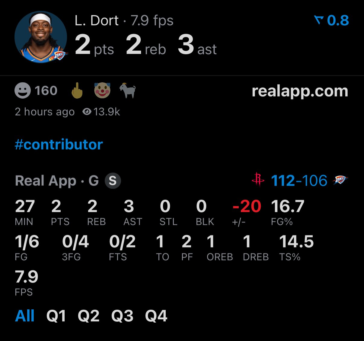 >>153311154At least SGA makes a discernible difference as to whether or not his team wins rather than them going .750 in his absence like a certain player
